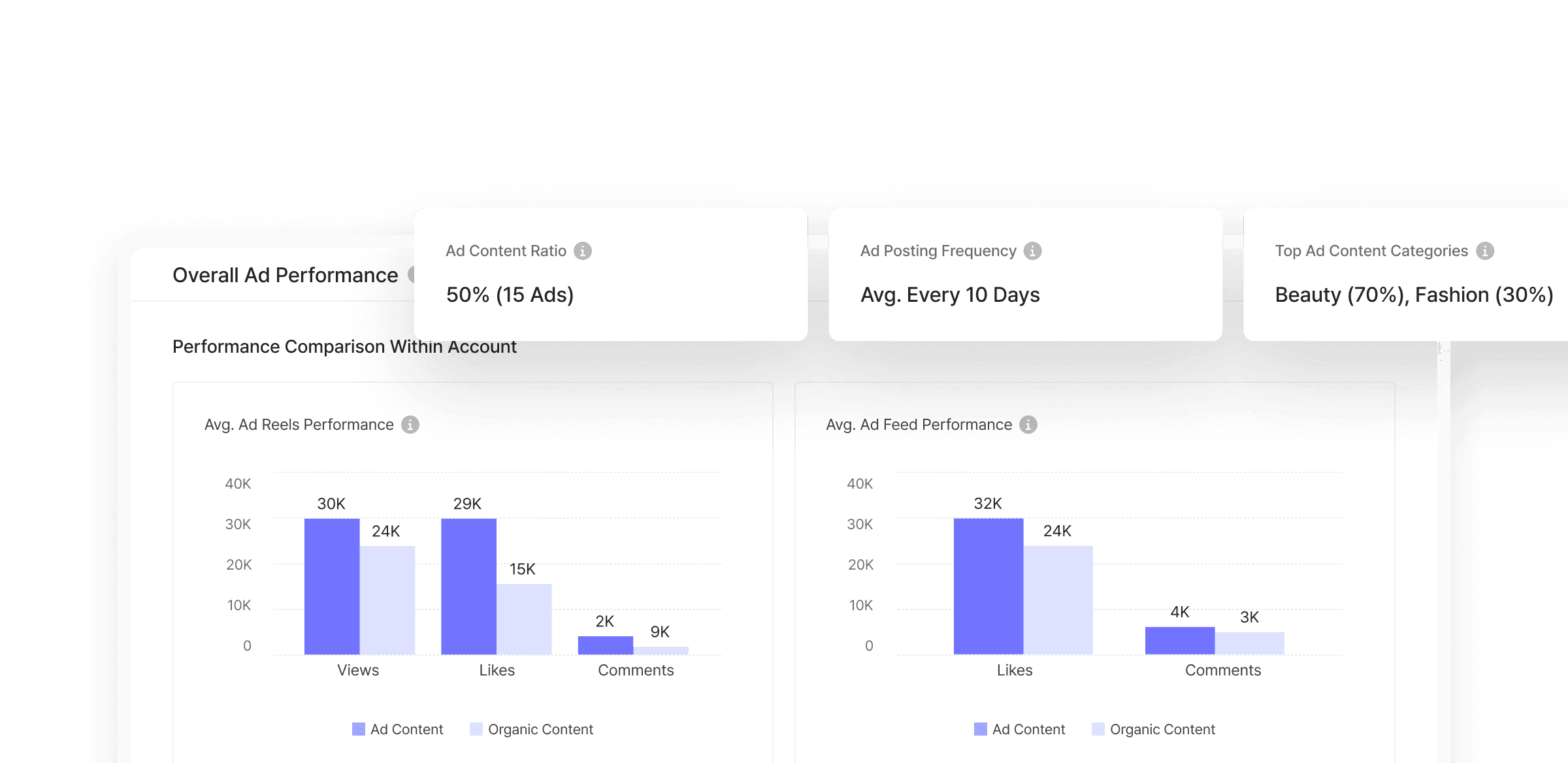 Measure views, likes, and comments against account averages to evaluate ad effectiveness.