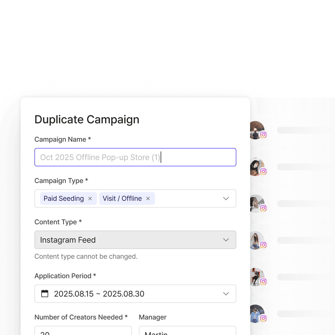 Duplicate successful campaigns in seconds to save time and keep your process consistent.