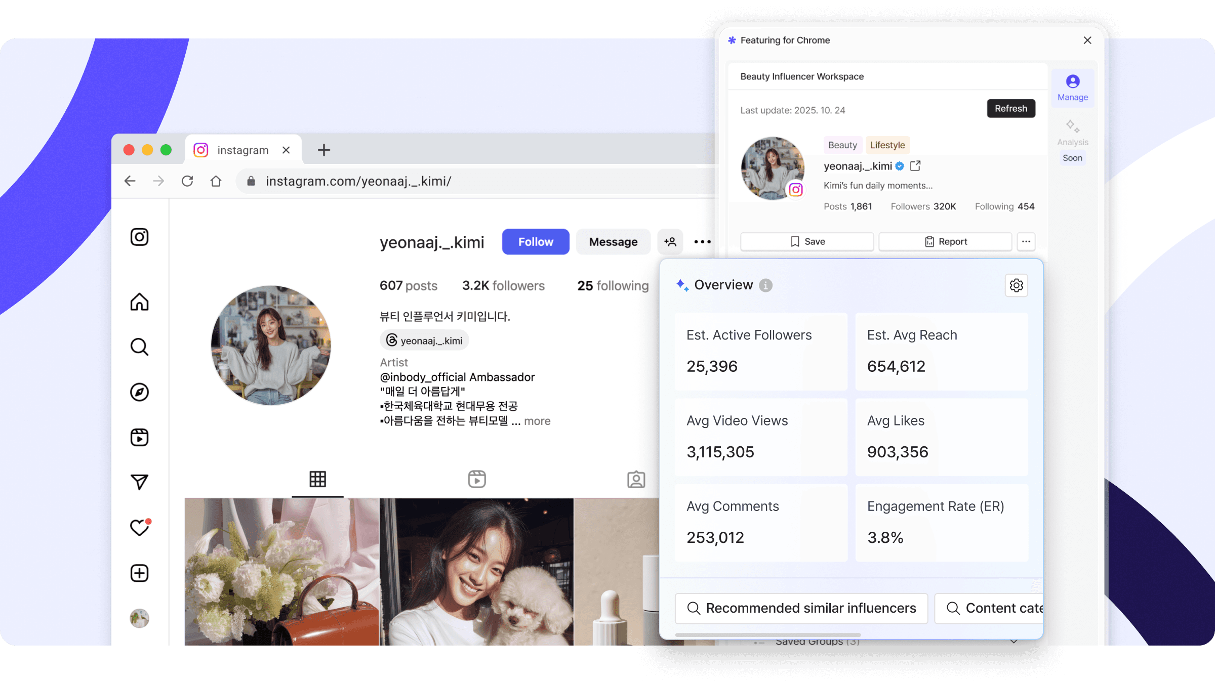 Get real-time performance and management data directly on Instagram and other social platforms with the Featuring Chrome Extension.