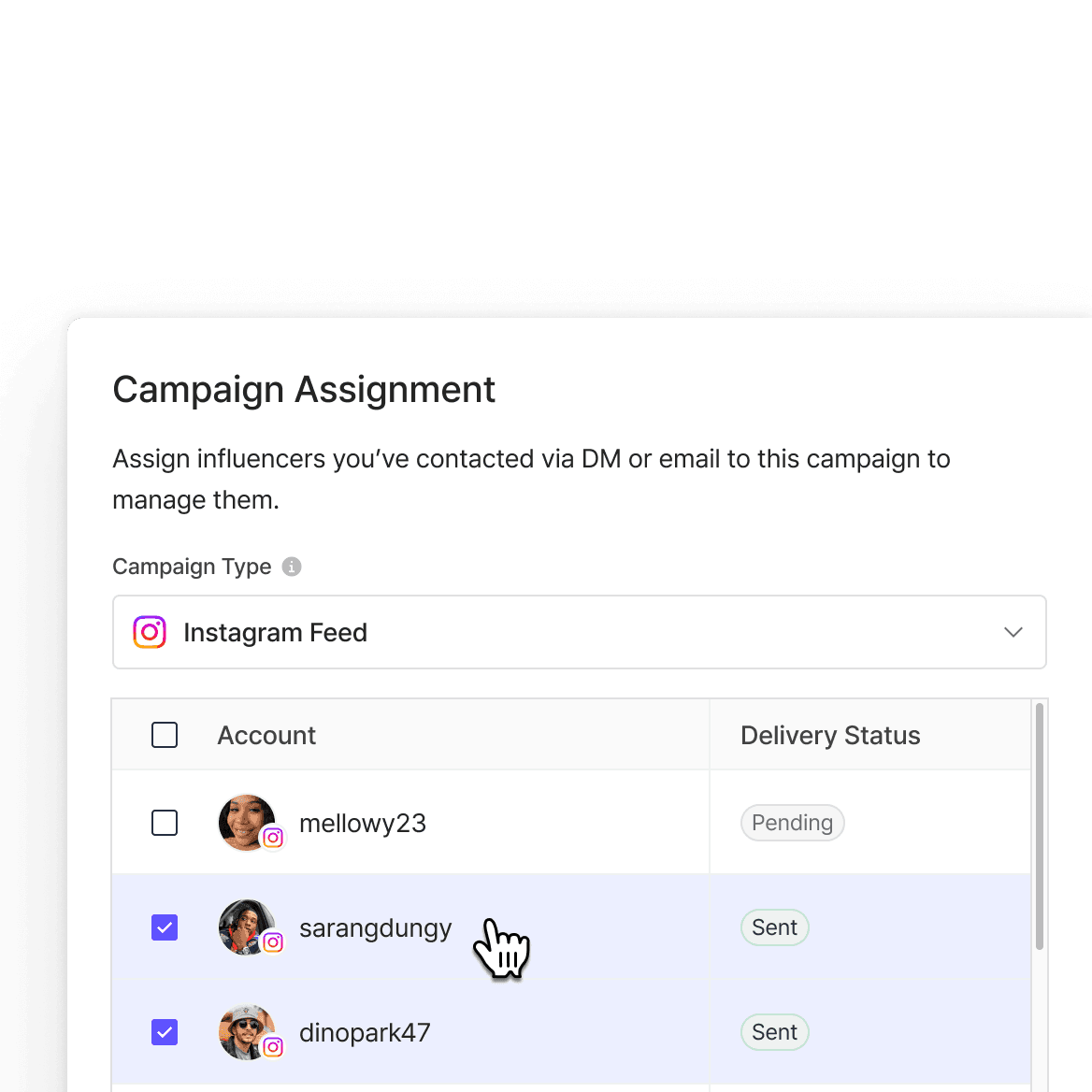 Message multiple influencers at once in just a few clicks.