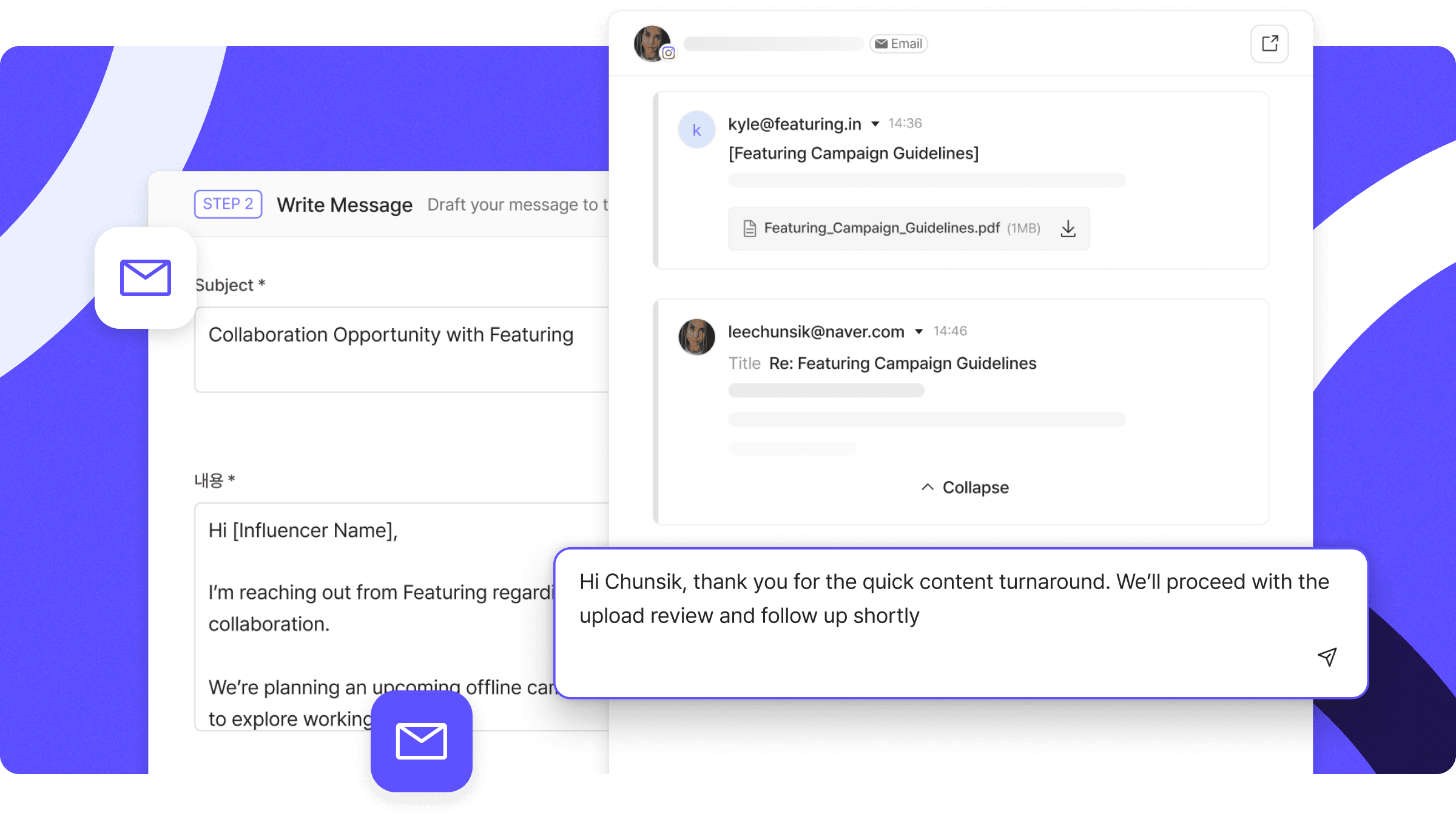 Start conversations with your influencers in minutes
